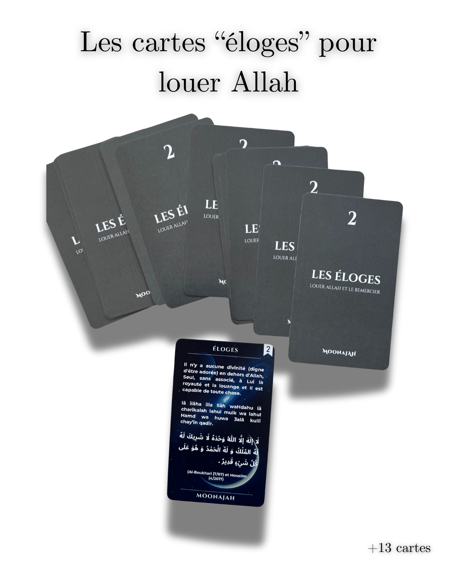 La boîte à invocation, elle, est pensée pour en plus des invocations inclure des cartes avec : les 99 noms d’Allah, des salawats, des éloges, des demande de pardon, une méthodologie claire pour savoir quand et comment invoquer, et 56 invocations variées (mariage, santé, rizq, matin, soir, etc.).